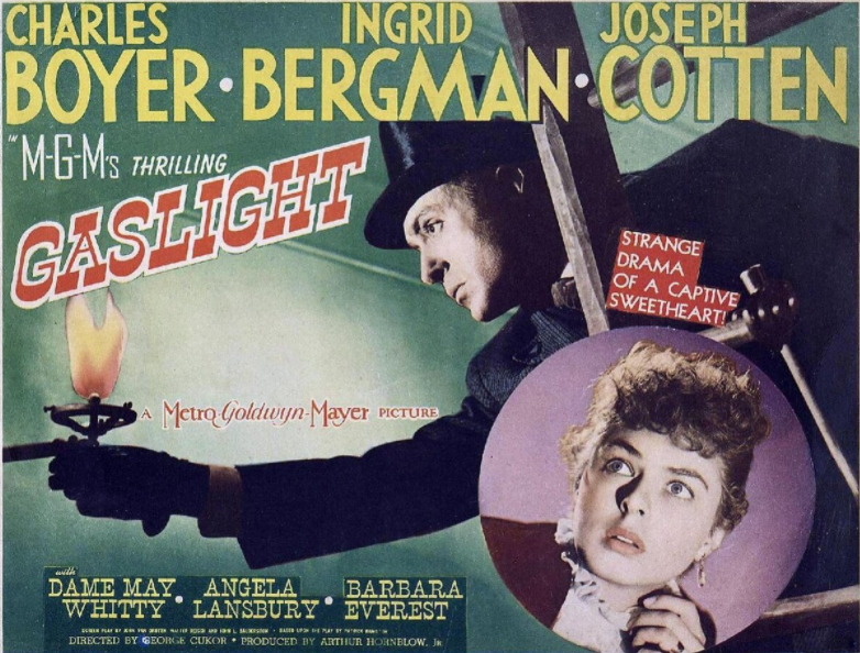 영화로도 각색된 이 연극은 아내의 재산을 노리고 결혼한 남편이 온갖 거짓말로 아내를 점차 정신병자로 만드는 과정을 그렸습니다. 남편은 집안의 가스등을 일부러 희미하게 조절하곤, 아내가 어둡다고 말할 때마다 "당신이 잘못 본 것이다. 왜 엉뚱한 소리를 하냐"며 핀잔을 줍니다. 이처럼 주변 환경과 소리를 교묘히 조작해 현실감을 잃게 하여 아내는 갈수록 스스로를 믿지 못하고 자책하며, 남편에게만 의지하게 만듭니다.