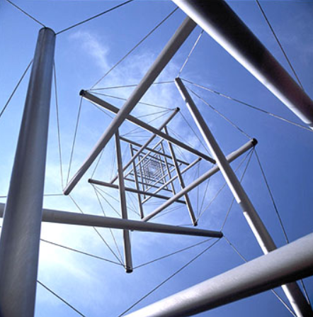 텐세그리티는 건축학 용어로 'tensional integrity'(긴장 상태의 안정성)의 축약어입니다. 인장(Tension)과 구조적 안정(Structure Integrity)의 합성어로 긴장상태의 안정구조를 말합니다. 튼튼한 구조체와 이 구조체에 달린 케이블이 서로 밀고 당기며 힘의 평형을 이뤄 구조체를 안정하게 유지시켜줍니다.
