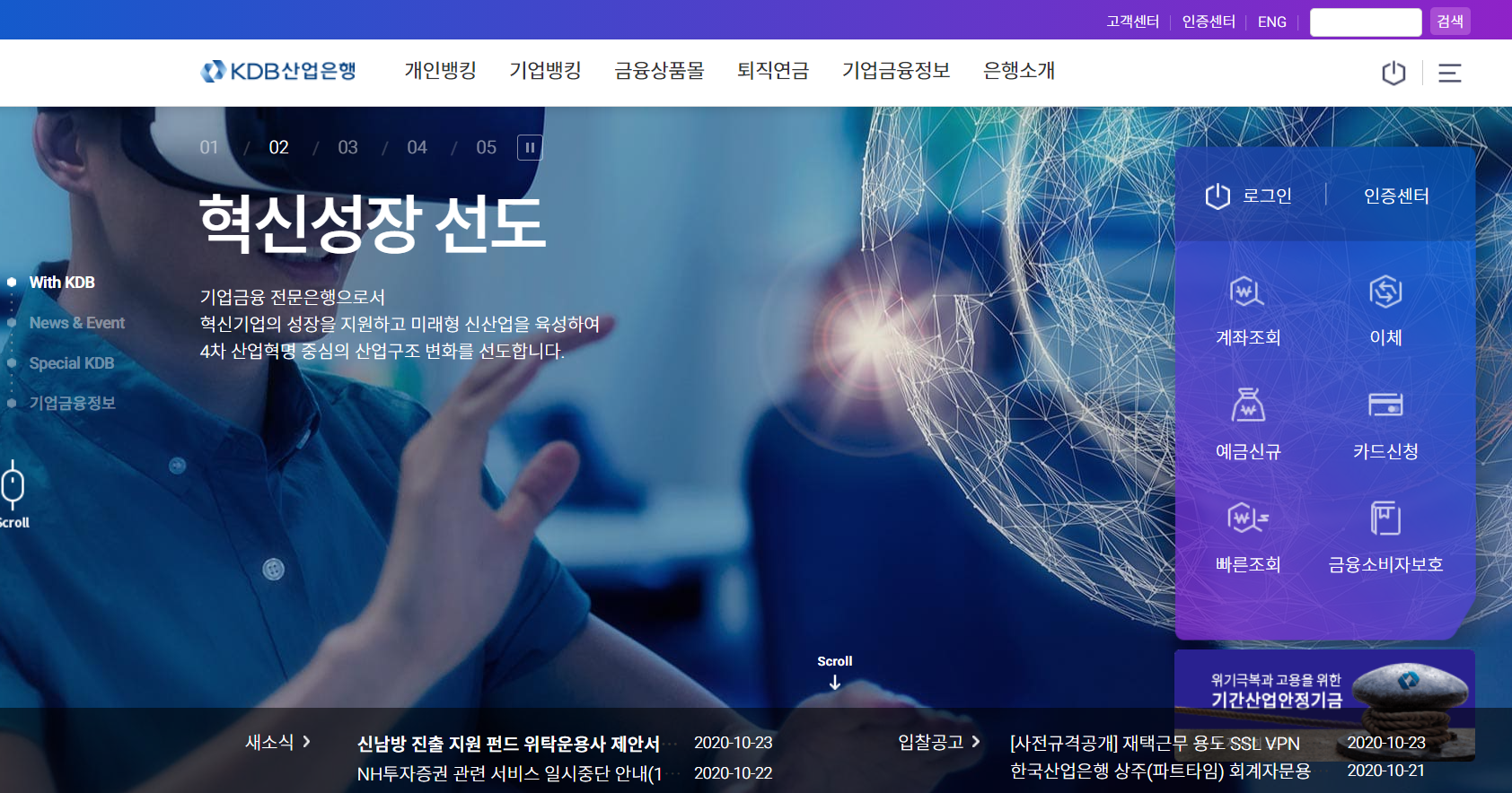 1. 산업은행 홈페이지(https://www.kdb.co.kr)에 접속하여 로그인합니다