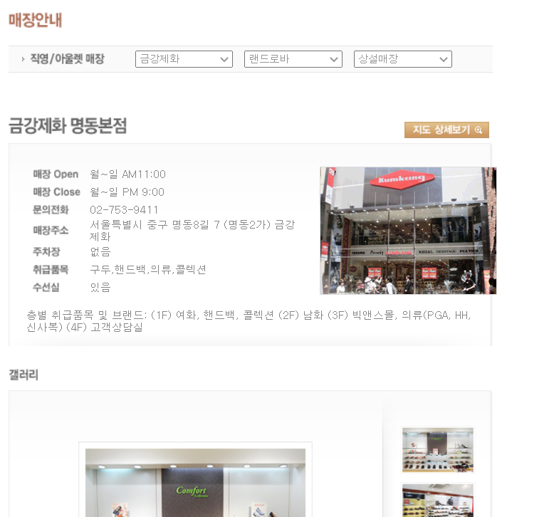 3. 지역과 구입처 형태(직영점, 백화점, 대리점, 아울렛)을 선택하고 조회합니다.