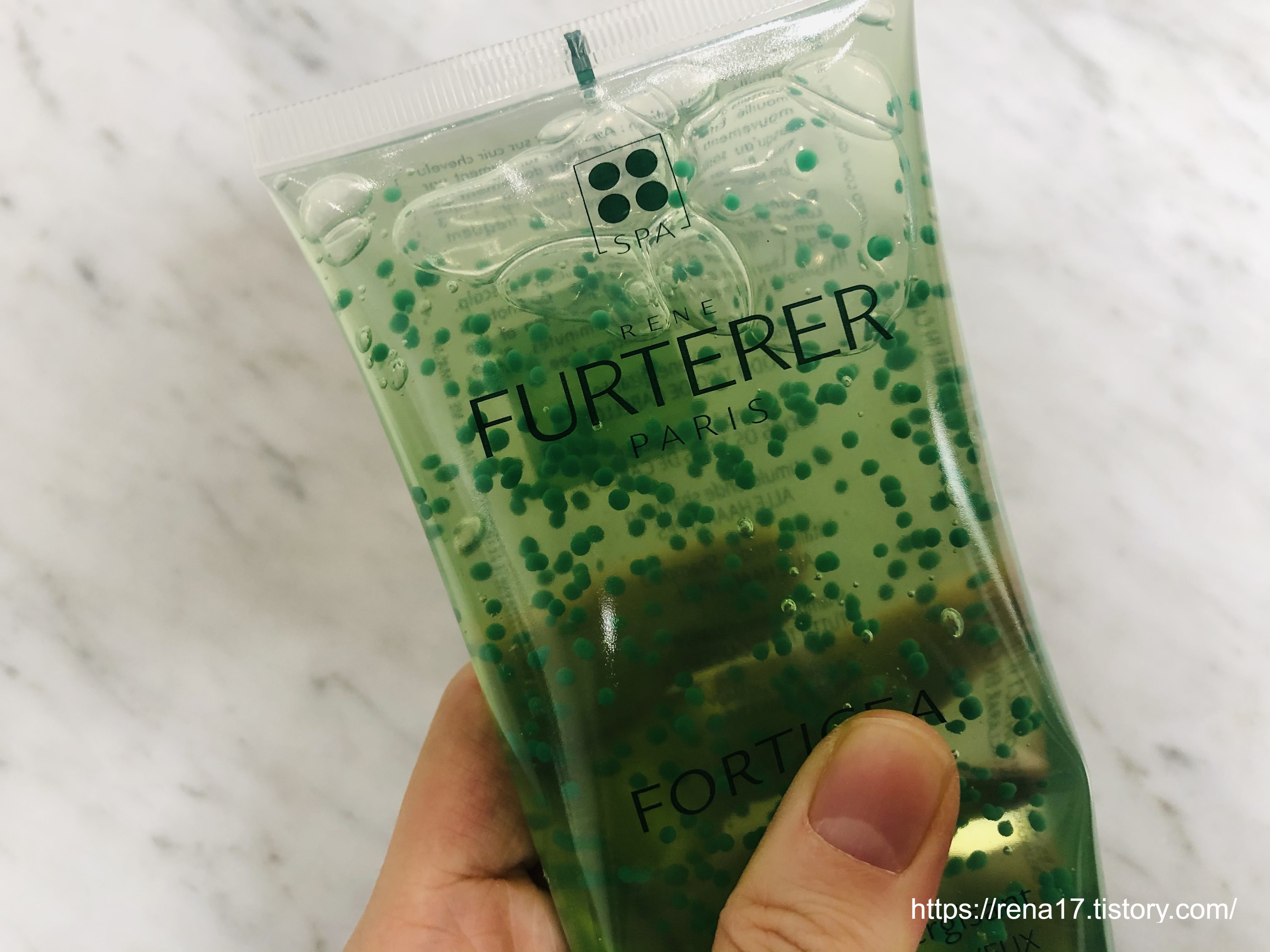 알로에가 연상되는 젤 제형에 초록 알갱이가 들어 있습니다. 포티샤 샴푸 하면 이 그린 캡슐이 먼저 떠오를 텐데요, 이 그린 캡슐은 바이오스피어 입자라고 합니다. 두피를 진정시키는 라벤더, 클렌징 효과를 높여주는 로즈마리, 두피 토닝을 위한 오렌지까지 3가지 성분이 고농축 된 알갱이입니다.