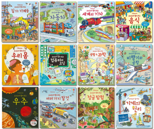 어스본의 요리조리 플랩북 시리즈는 현재까지 20여권의 책이 발간되었습니다. 그 주제로는 우리몸, 탈 것, 자동차 기차, 비행기과 공항, 생활 속 과학, 우주, 음식, 정글탐험, 컴퓨터와코딩, 집 짓는 기계들, 기계의 원리, 동물들의 집, 이집트와 피라미드, 병원, 소화와 영양소, 직업, 스포츠, 날씨와 기후 등입니다.가격은 한 권당 약 13,000원이며 20만원대에 18권 세트로도 판매하고 있습니다.