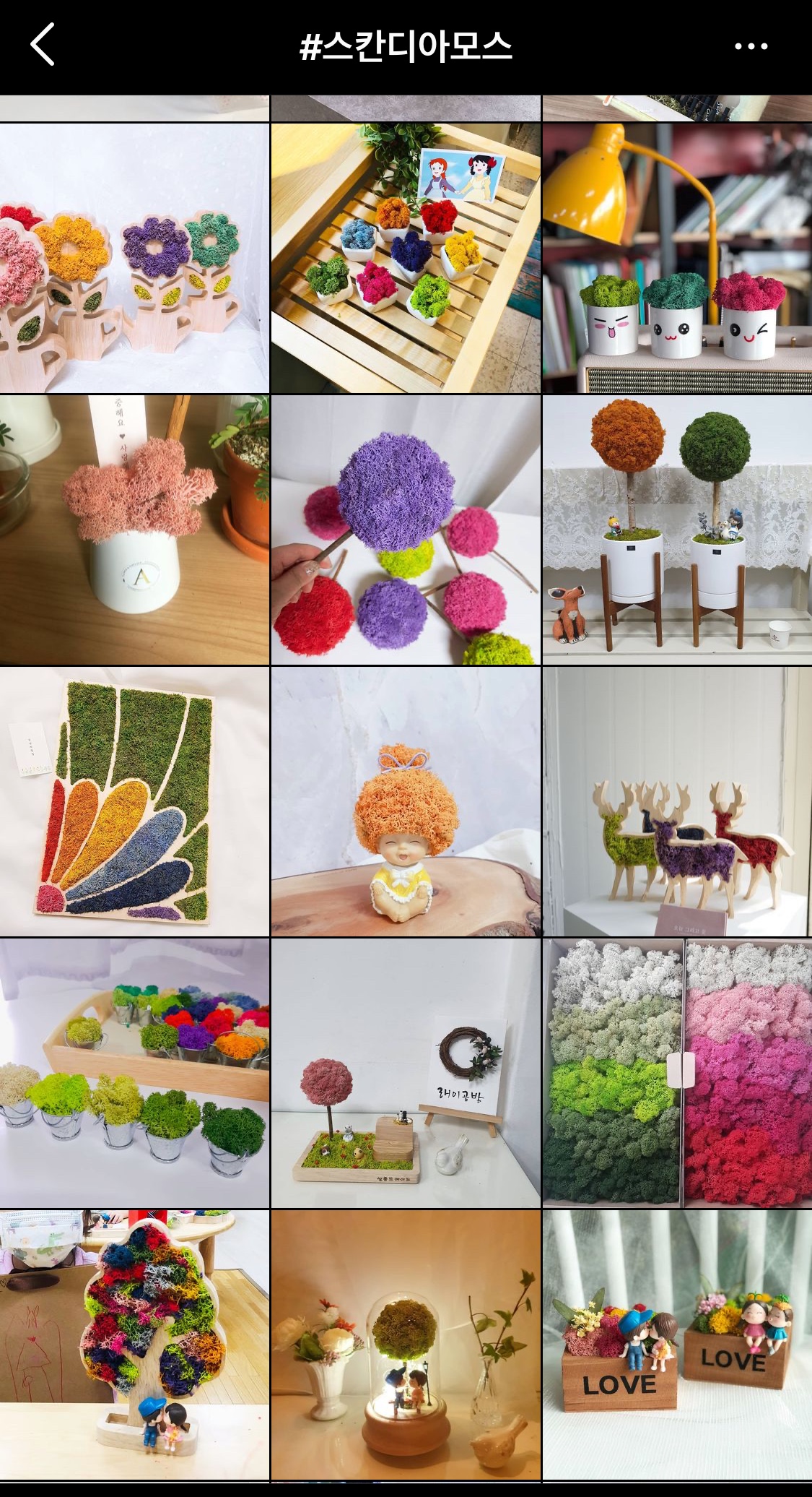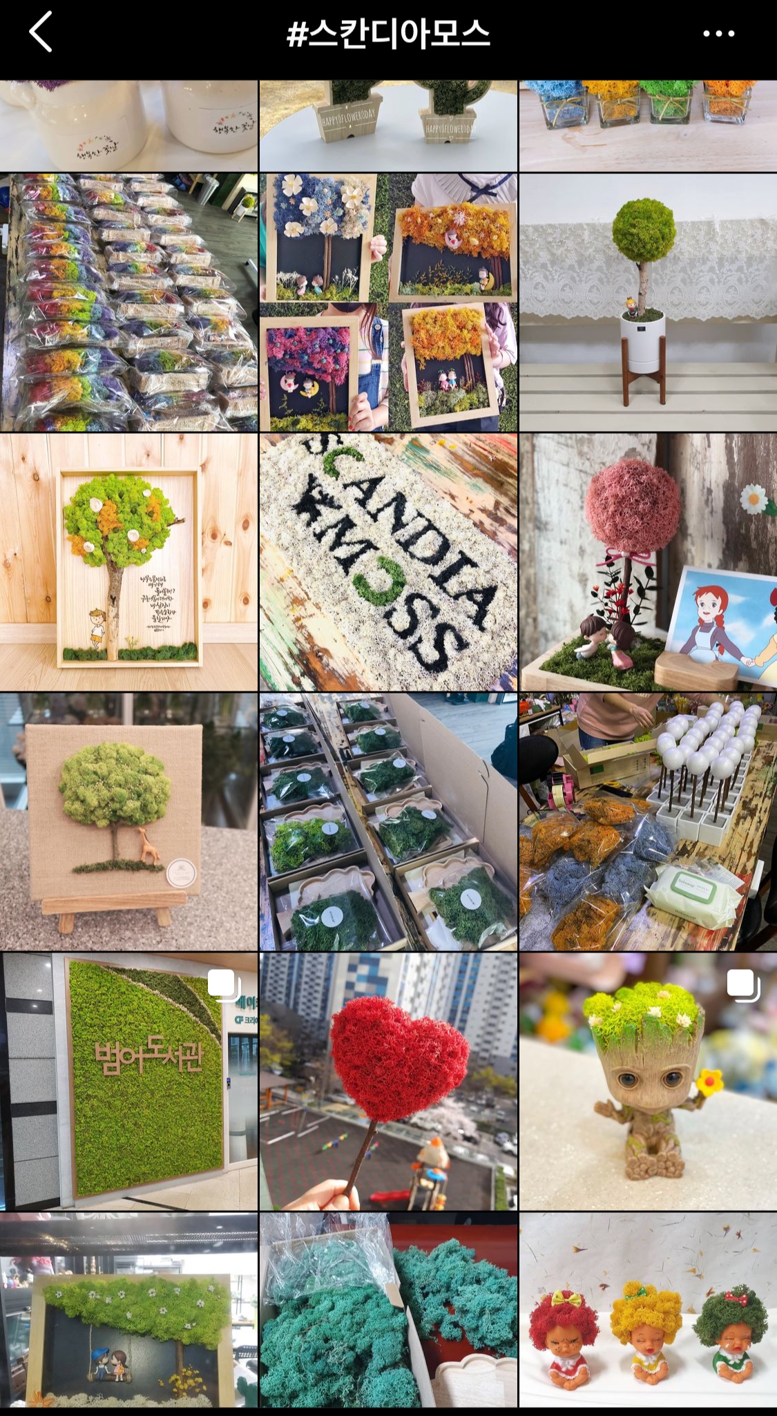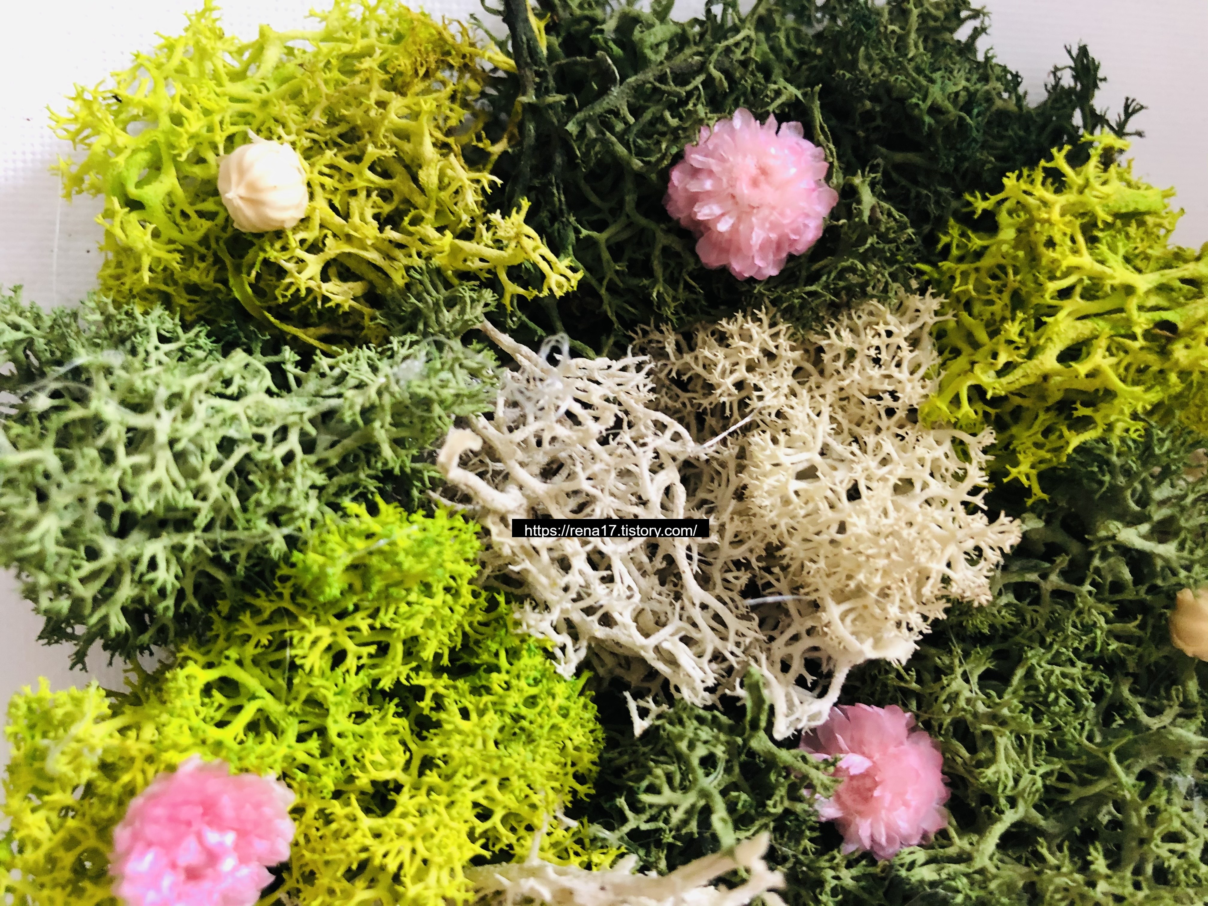 영어로는 scandiamoss 로, 북유럽 일부에서 자생한 천연이끼(모스 순록 이끼)를 가공한 것입니다. 순록이 먹는 천연이끼에 인체무해한 천연염색을 더해 시각적 효과도 주어, 친환경 인테리어나 화훼장식 등에 많이 사용되고 있습니다.