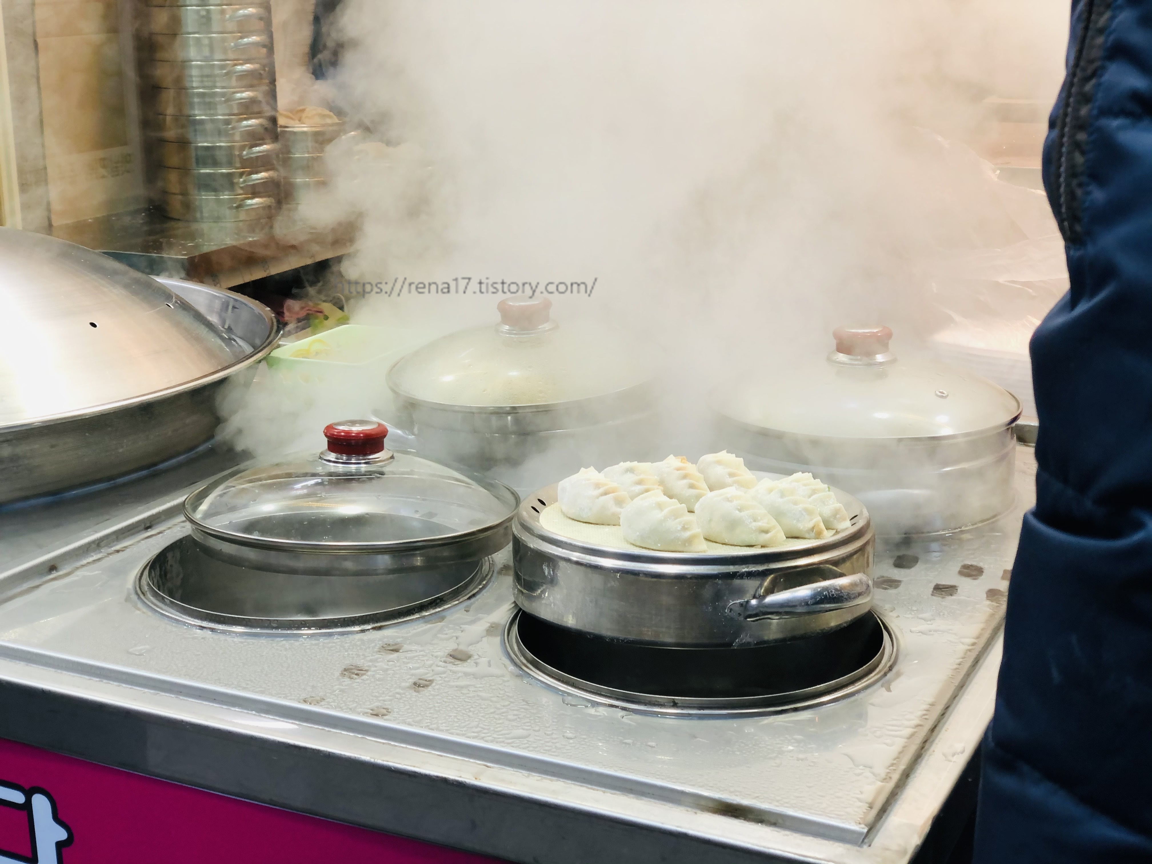 고기왕만두와 김치왕만두는 큰 찜기에 푹 찌고 있기 때문에 주문 즉시 찜기에서 꺼내 포장해 주십니다. 구입과 즉시 가져갈 수 있죠. 하지만 얇은피 만두는 주문하면 그 자리에서 즉석으로 찝니다. 주문한 구성(고기, 김치, 반반)에 따라 찜기에 넣고 3분 30초간 쪄냅니다. 그래서 주문 후 기다려야 합니다. 시간이 급하면 왕만두를, 기다릴 여유가 있다면 얇은피만두를 주문하면 되겠네요.