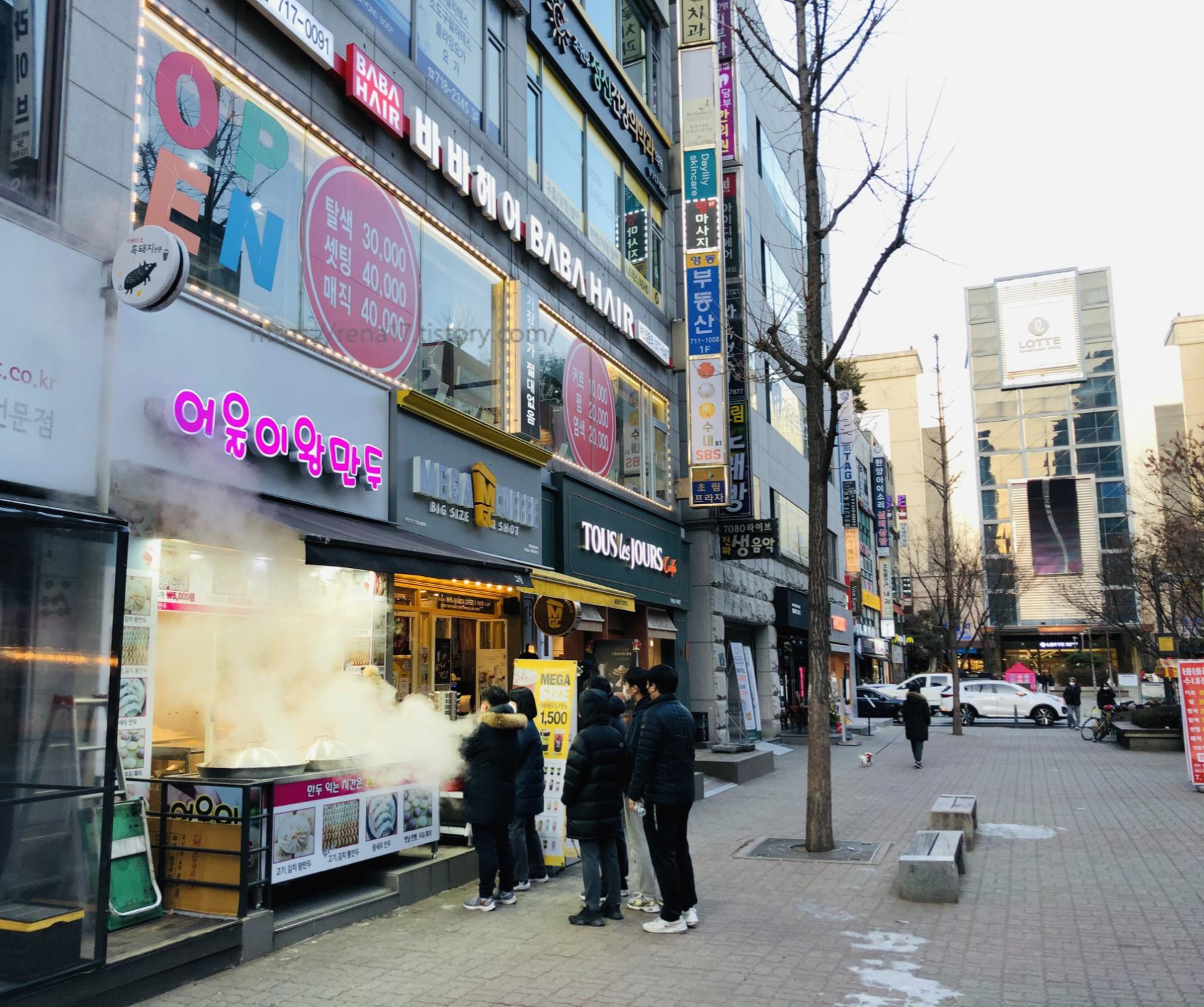 어울이왕만두를 찾아가는 길은 이와 같습니다. 수내역사 내 1층 폴바셋 매장 쪽 출구로 나오면 오른편에 맥도날드가 보입니다. 그대로 쭉 직진하면 우측에 뚜레쥬르가 보이는데요 그 옆의 메가커피 매장 옆쪽에 위치하고 있습니다. 가게가 생긴지 얼마 되지 않아서인지 포털사이트 지도에도 나와 있지 않아, 아래처럼 지도에 표시해보았습니다.